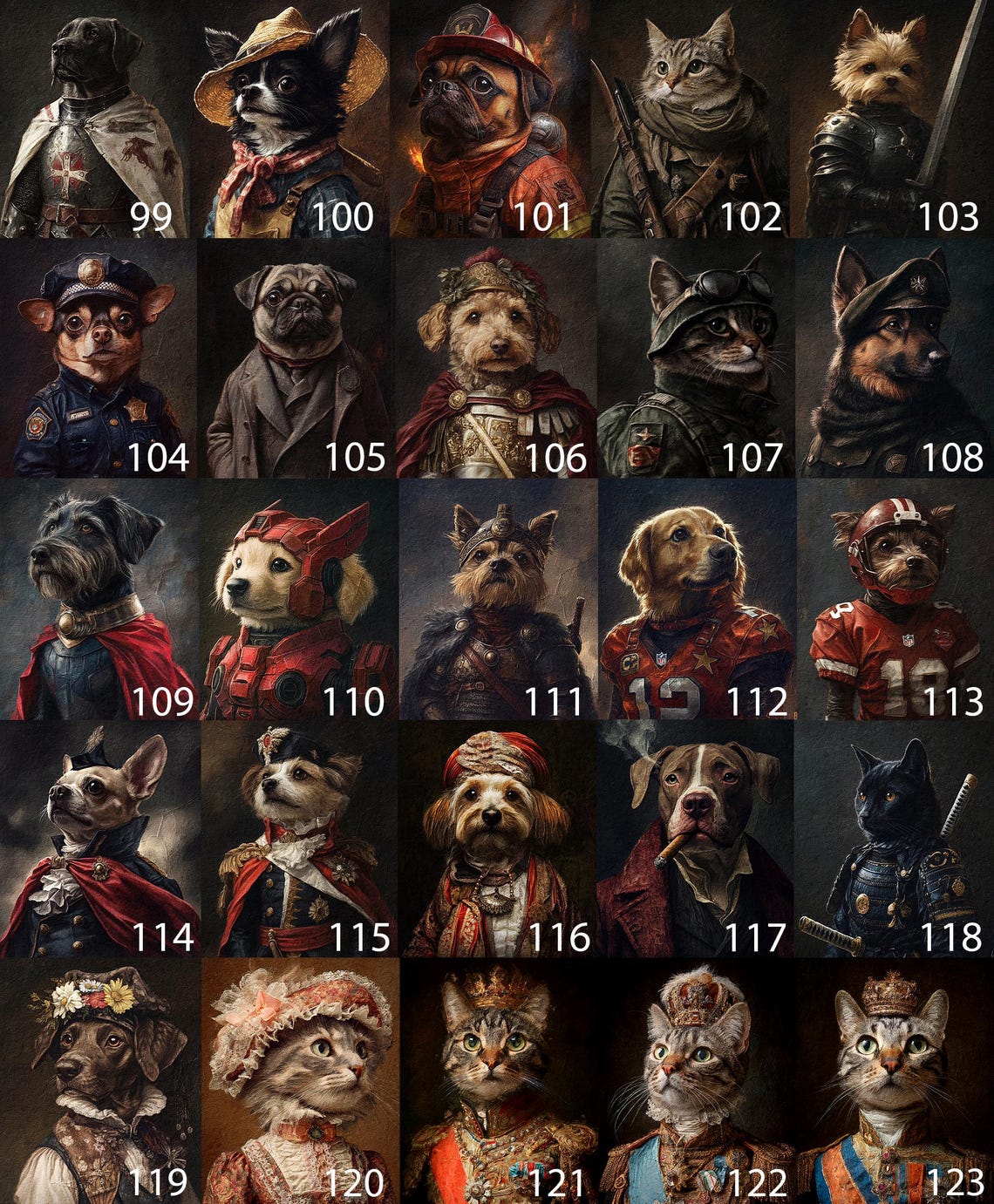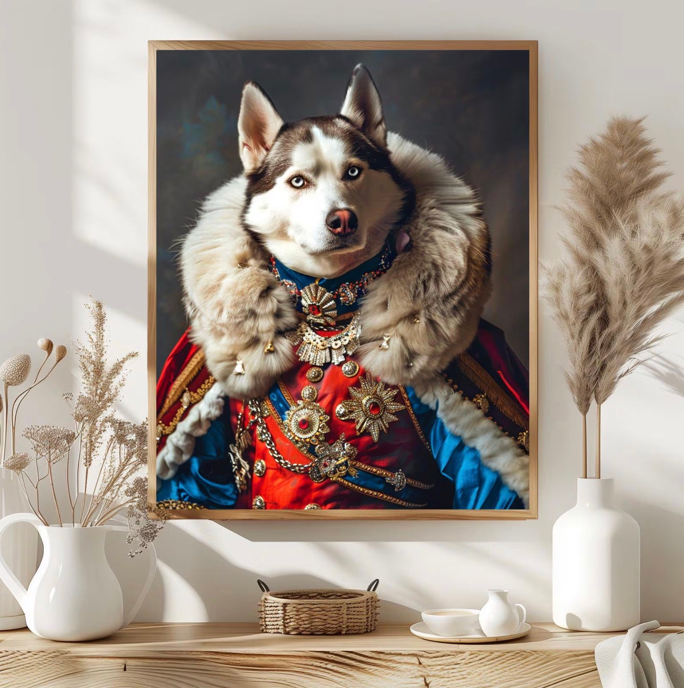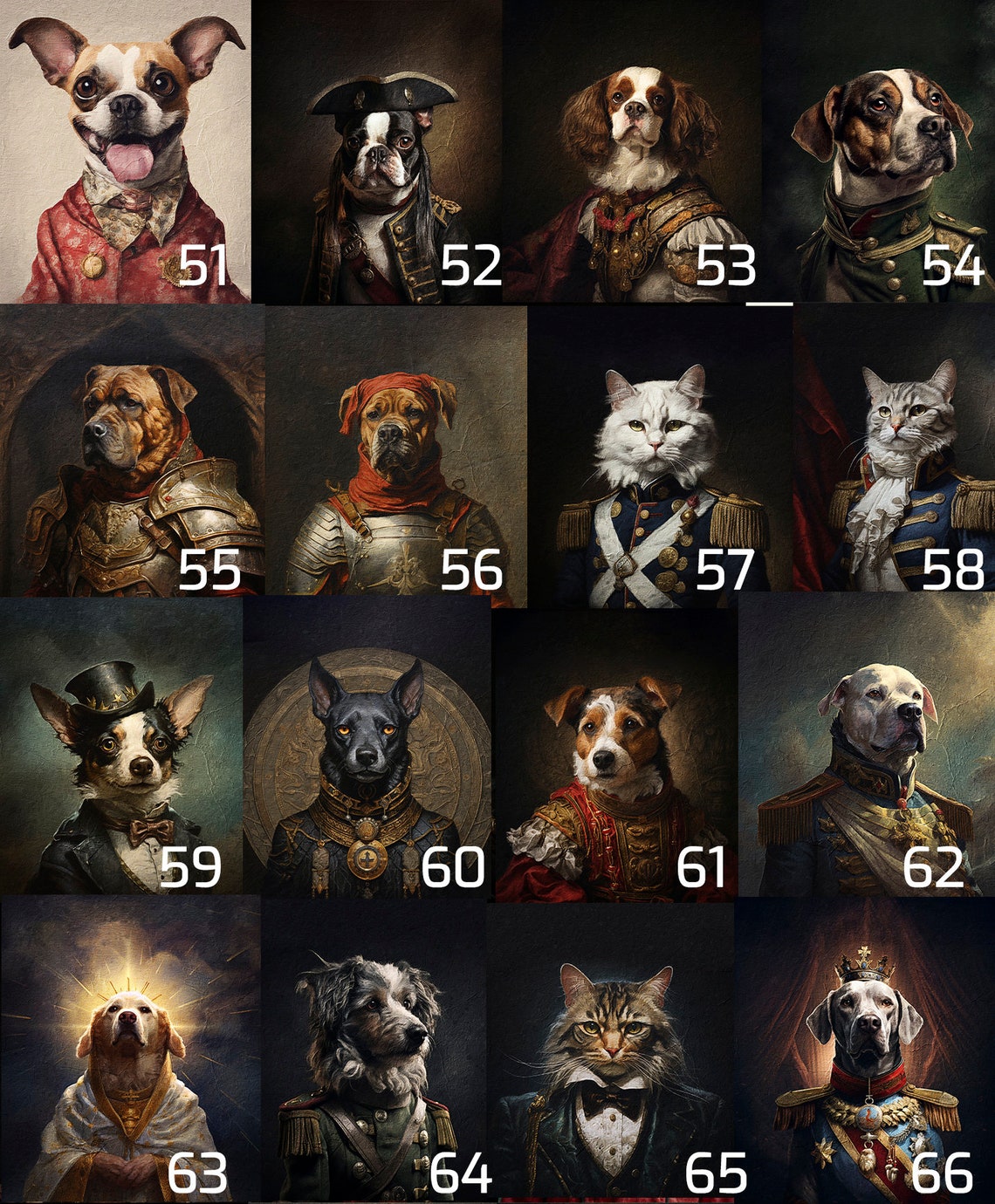 Šie portretai puikiai tinka pagerbti mylimų augintinių atminimą. Įtraukdami savo personalizacijas, galite papuošti bet kurį namų kambarį arba padovanoti artimiesiems portretą, kuriame jūsų augintinis paverčiamas karališkosios šeimos nariu.