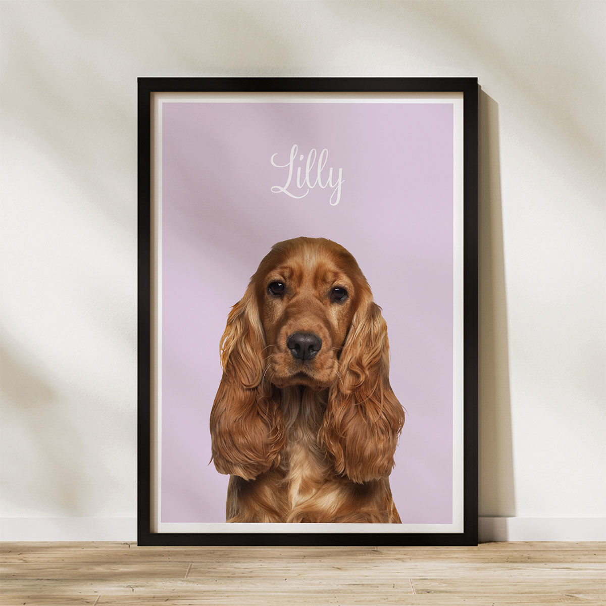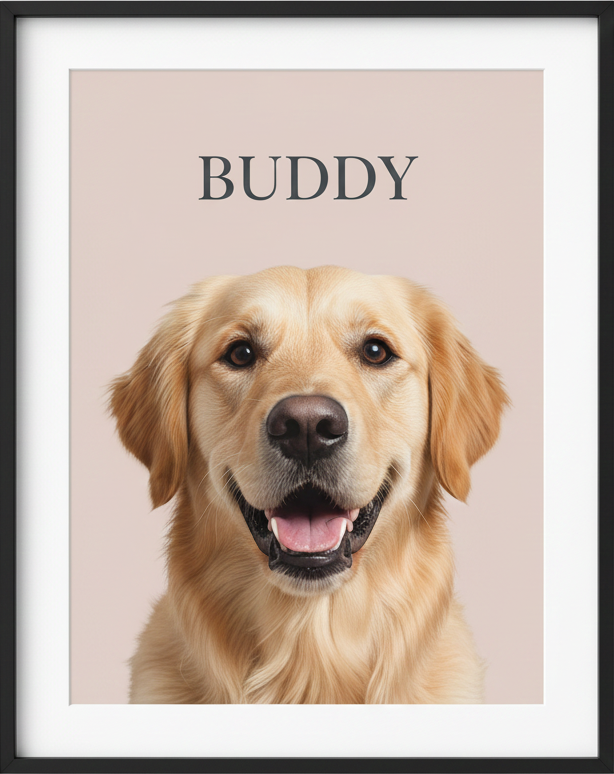 Minimalistinis augintinio plakatas – tai švarus, modernus ir estetiškas personalizuoto posterio stiliaus kūrinys, sukurtas iš jūsų atsiųstos nuotraukos. Pagal ją profesionaliai atkuriame subtilų augintinio portretą su vientisu fonu ir vardu, kad plakatas taptų unikalus ir asmeniškas.